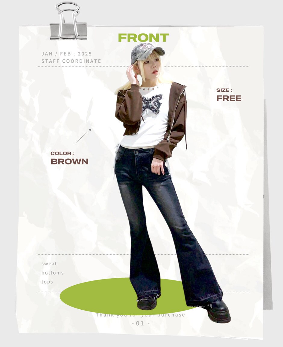 ショートパーカーとフレアパンツはスタイルアップ効果抜群!