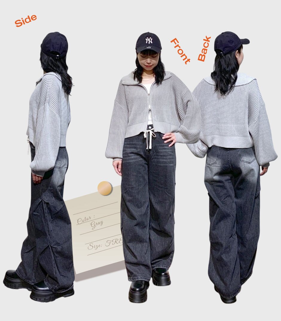 ショート丈のニットとフレアデニムでスタイルアップ!