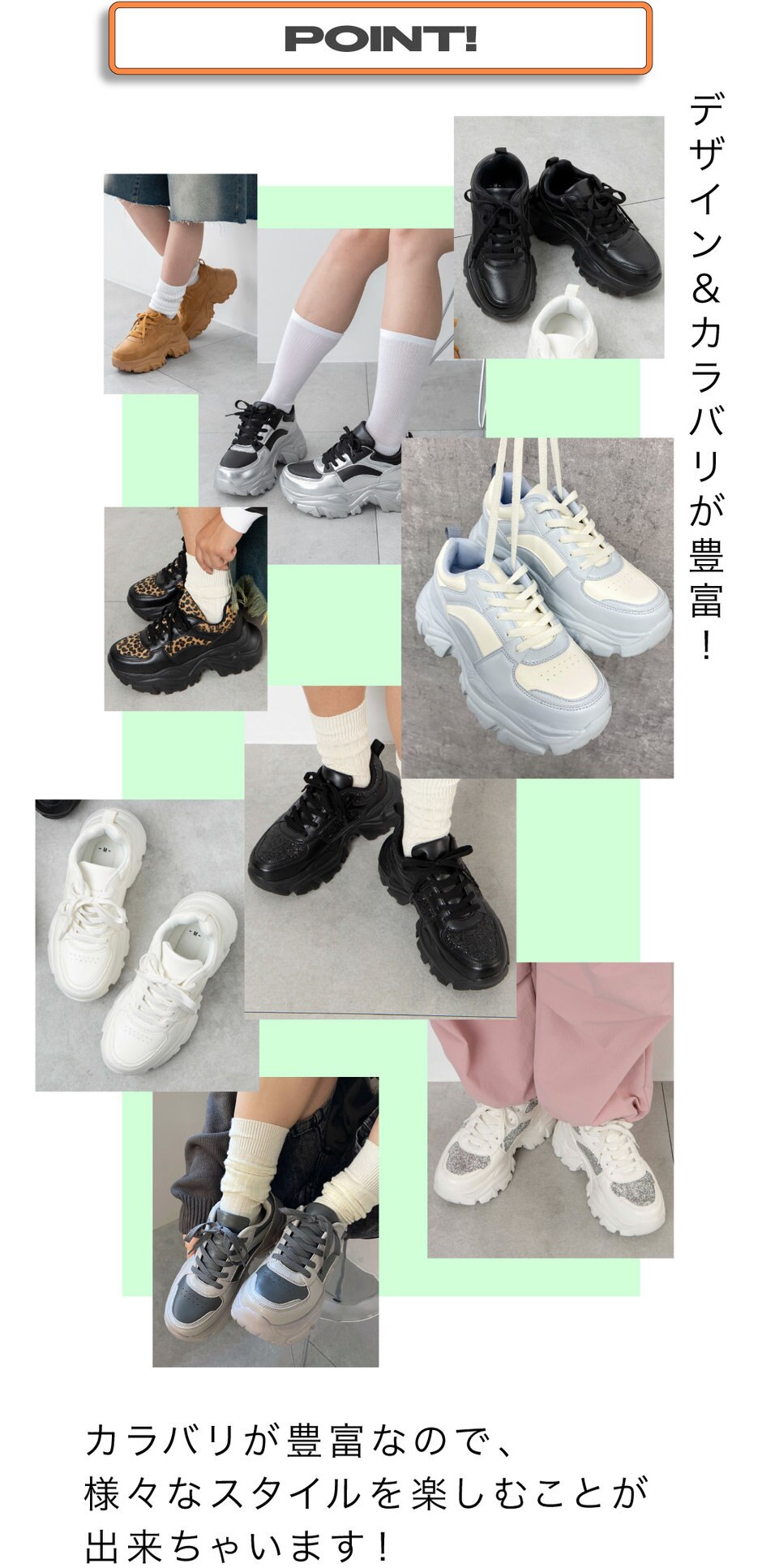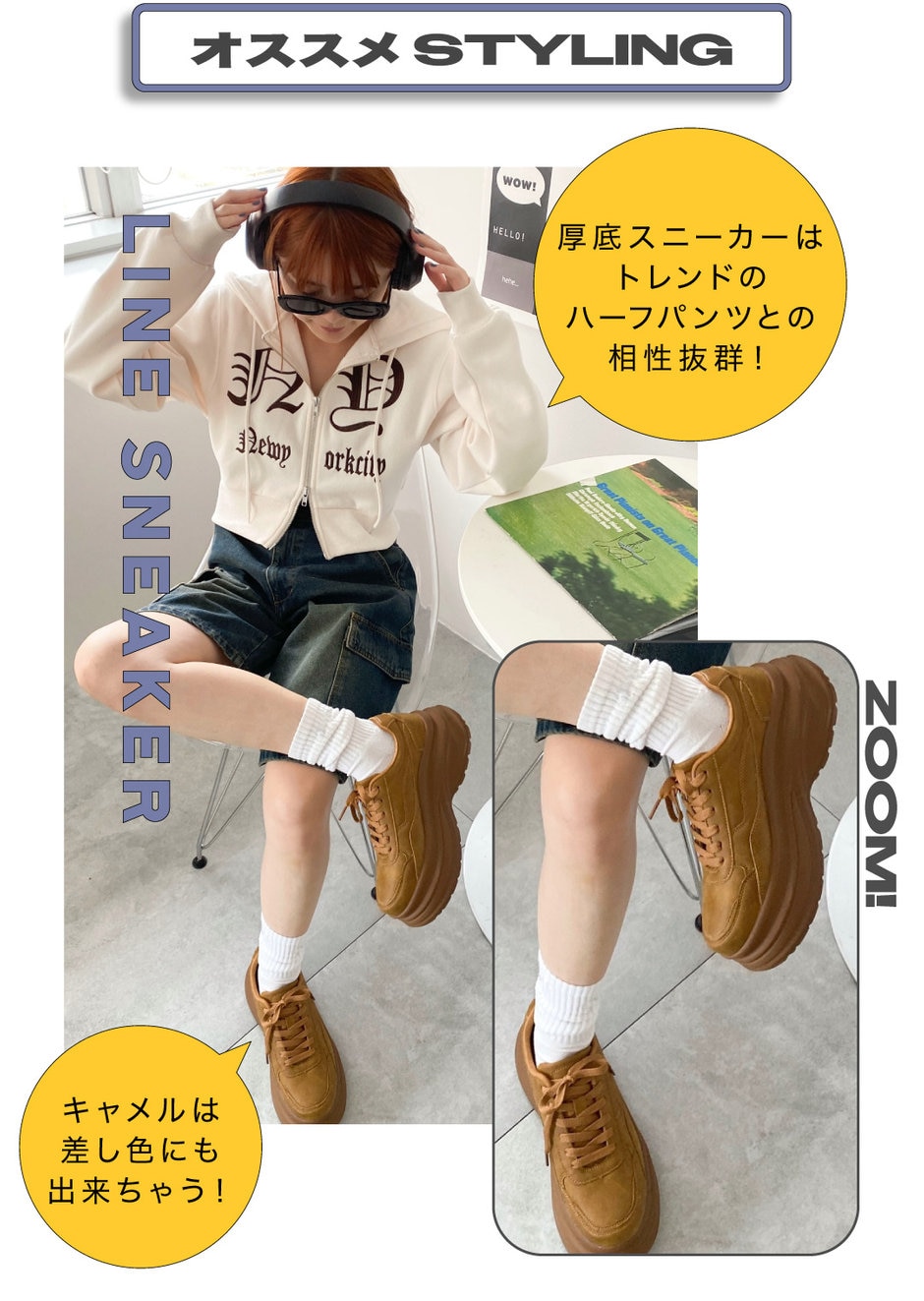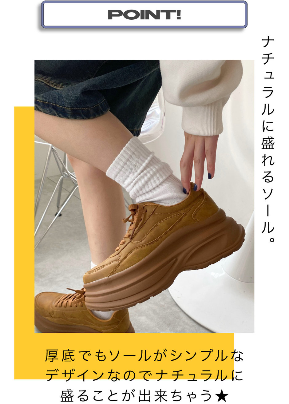ボリュームのある厚底は脚長&スタイルアップ効果抜群。