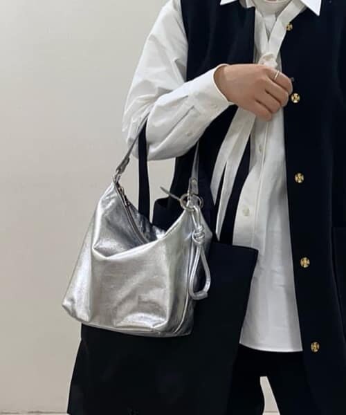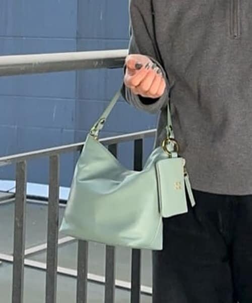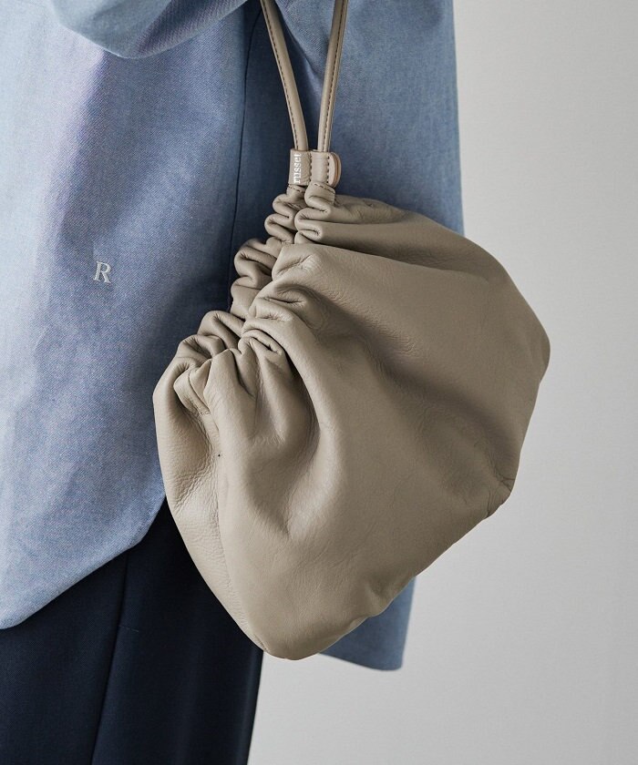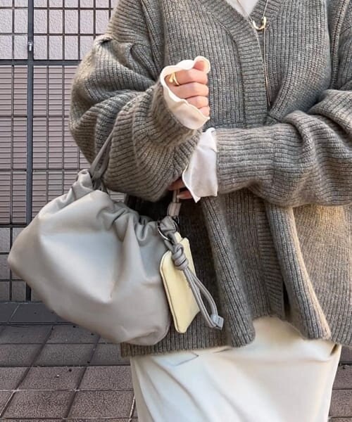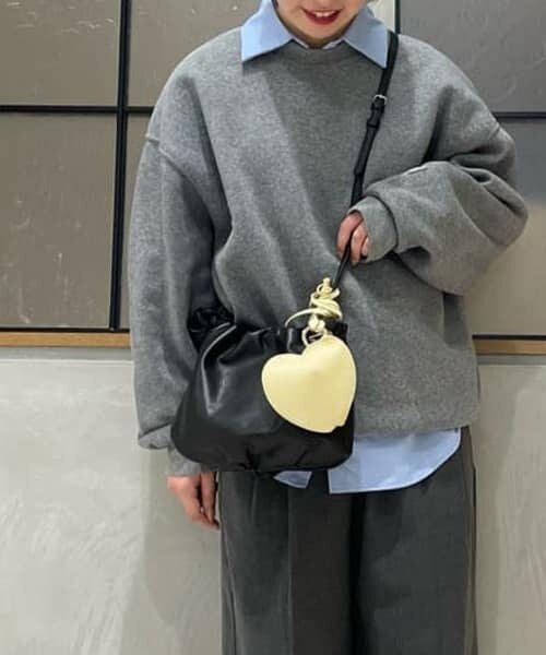人気の巾着バッグ。そのままでもデザイン性があって映えるのですが、チャーム合わせで自分らしいバッグに。