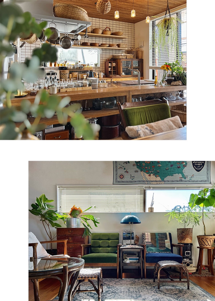 たとえば、「茶色・ベージュ・緑の部屋」「青・緑・茶色の部屋」と部屋ごとにテーマカラーを3つずつ決めて家具や小物選びをすれば、自然とまとまりのある空間に。