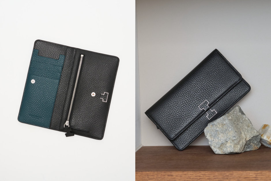 一見シンプルながら、内側はバイカラーの組み合わせで遊び心をくすぐるデザイン。引手は「I」ロゴのレザーパーツなのもアクセントに!長財布で安心な収納力ですが、薄マチのデザインでバッグの中でもかさばらないのも嬉しいポイント!