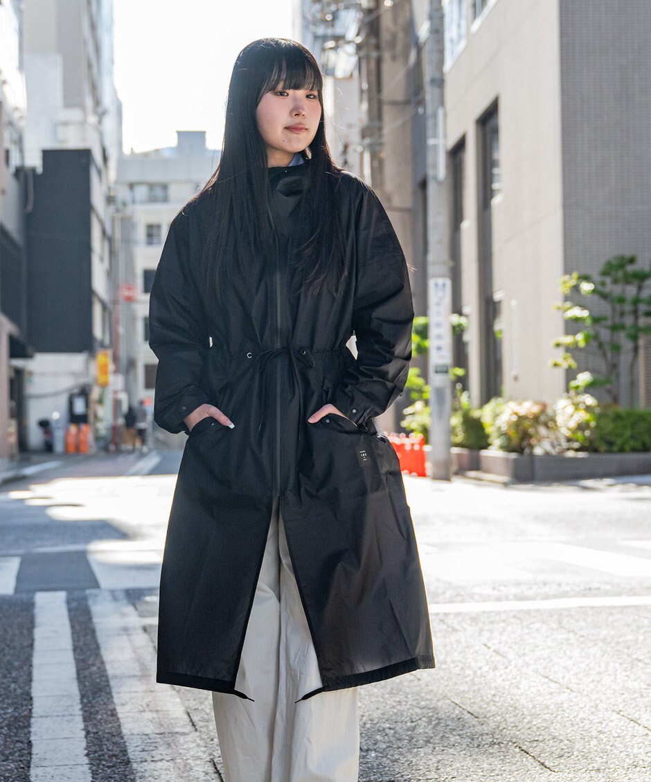 防水性は勿論のこと、デザイン性にもこだわりファッションピースでありながらレインウェアであることを実現しています。