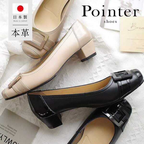 日本製 本革バックルパンプス