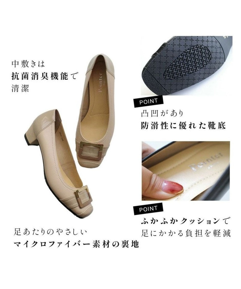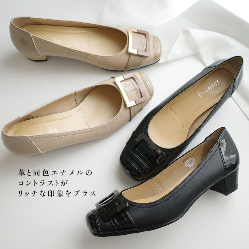 日本製 バックルモチーフスクエアトゥパンプス