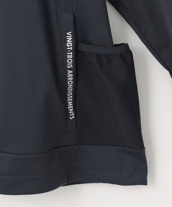 サイドには伸縮性とハリ感に優れたハニカムメッシュ素材を採用し、ストレッチ性のあるポケットを搭載。