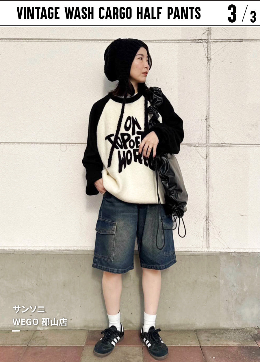 ヴィンテージウォッシュカーゴハーフパンツを使ったコーデ