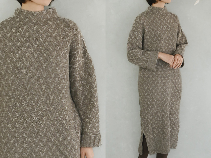 〈希少なラムウール&高品質カシミヤ〉バスケット柄ニットワンピース