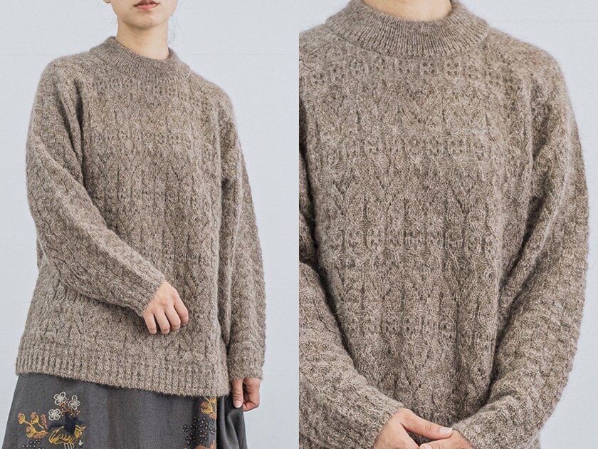 〈ふっくら柔らか高品質 キッドモヘア×アルパカ×ウール〉〈2サイズ展開〉模様編みプルオーバー
