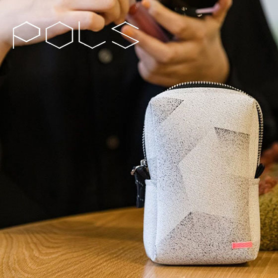 POLSのジャカード生地の裏面にポリウレタン加工を施し 立体感があり型崩れが起きにくく強度のあるポーチに仕上げました。