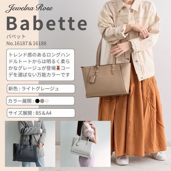 Jewelna Rose バベット ロングハンドル トートバッグ A4 16188 ジュエルナローズ