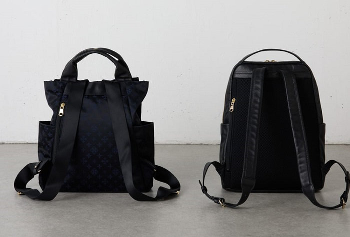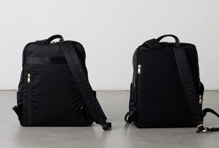 スクエアリュックは前面と同じ素材、多機能リュックサックはメッシュ仕様になっています。