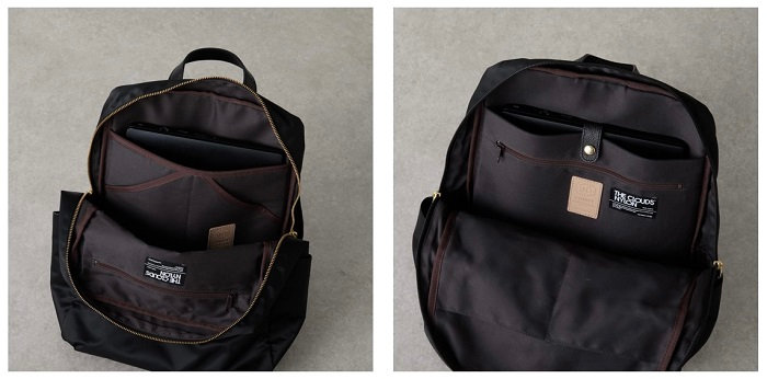 どちらにもPC収納ができるクッション仕切りがついたポケットがついています。