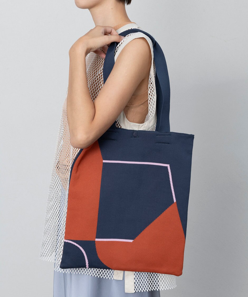 定番のサイドメッシュバッグの形で、新たにブロックカラーのトートバッグが登場。大胆な配色の切り替えと、コードの組み合わせを楽しめるデザインになっています。