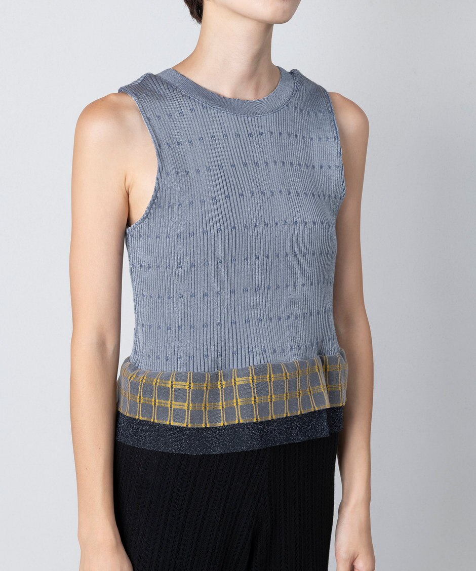 2カラー展開 BLUE/PINKBEIGE6.【上品な光沢感と爽やかなチェックがポイント♪】リブノースリーブニット