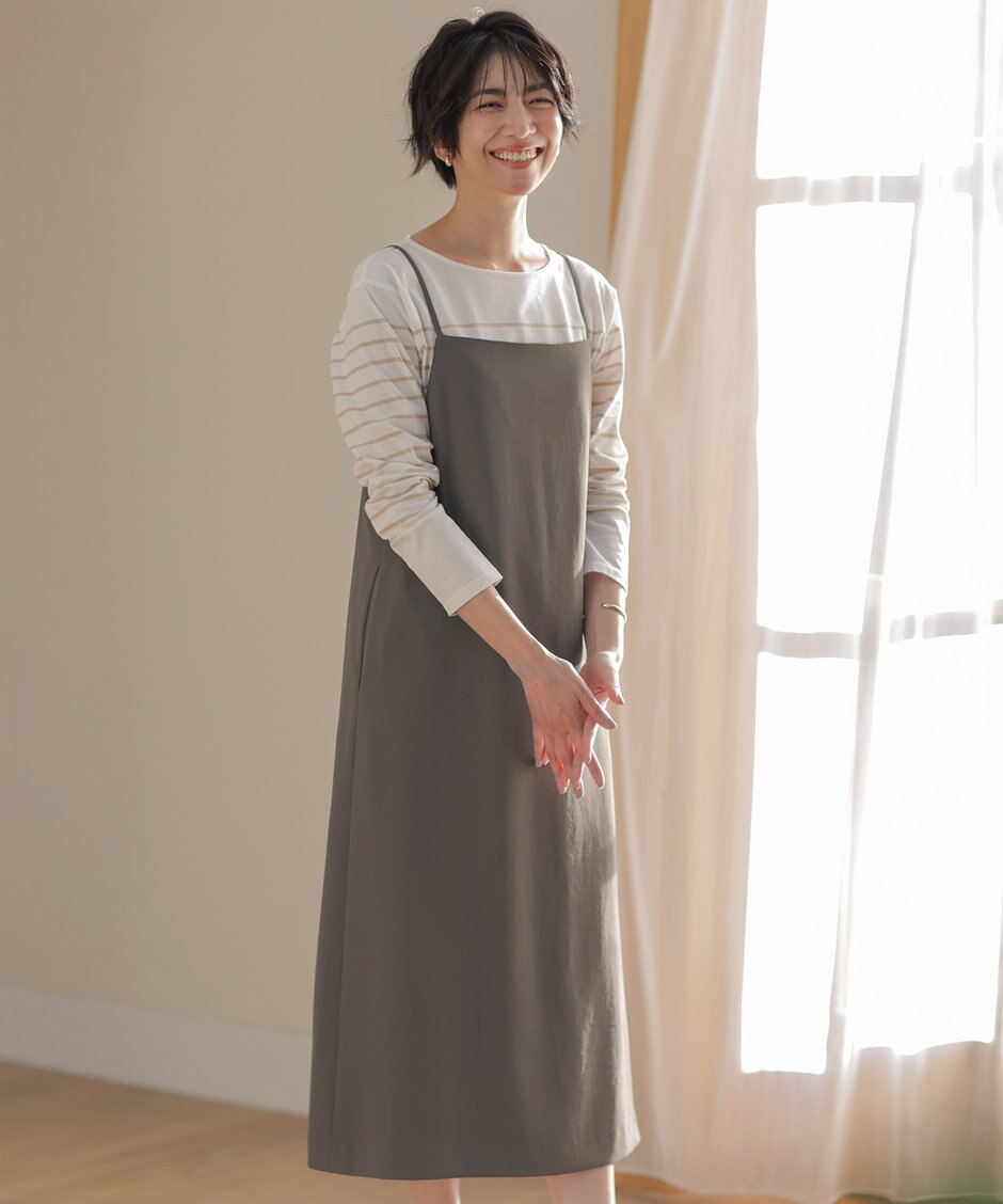 上品なマットな質感と滑らかな肌触りが特徴の、軽やかに着こなせるキャミワンピース。程良く落ち感のあるシルエットが身体のラインを美しく見せてくれます。華奢なストラップがフェミニンな雰囲気を引き立て、インナー次第で様々なスタイリングが楽しめます。表面はドライタッチで、裏面がサテンになっており肌触りが良くストレッチ性も◎。着用ジワも気になりにくく、手洗い可能なイージーケア素材です。