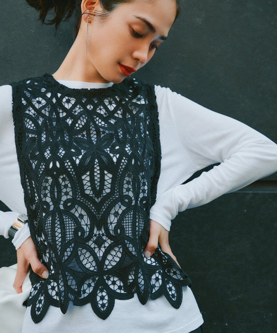 エンブロイダリーレース ニットベスト ¥20,900(税込)