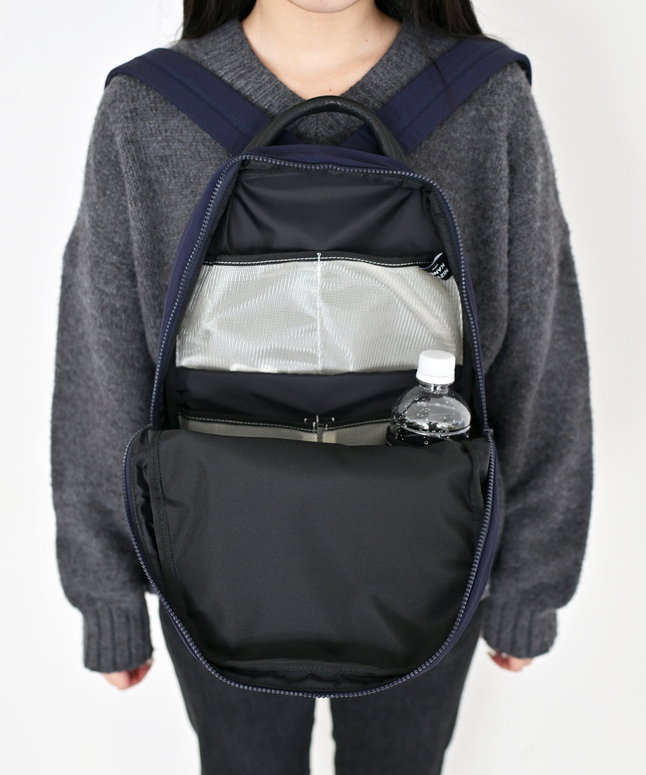 フロントにはアクセントになる前ポケットを配置したシンプルなデザイン。