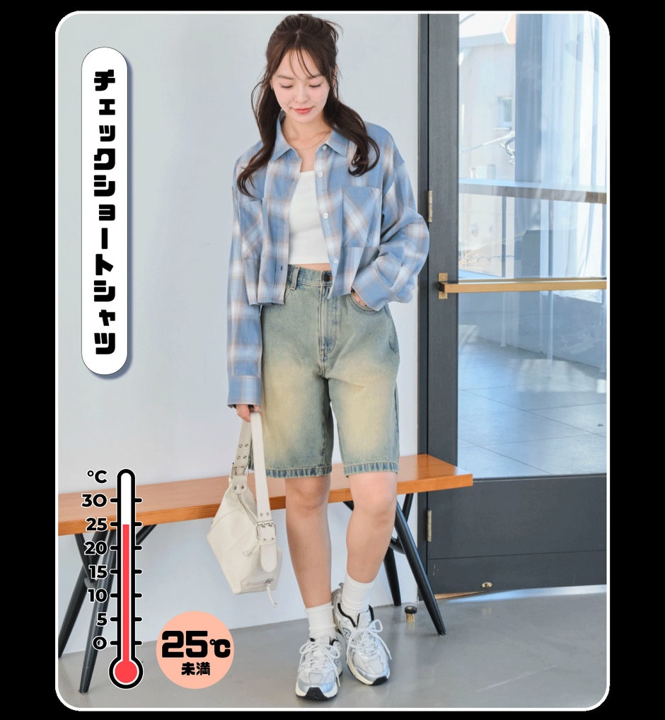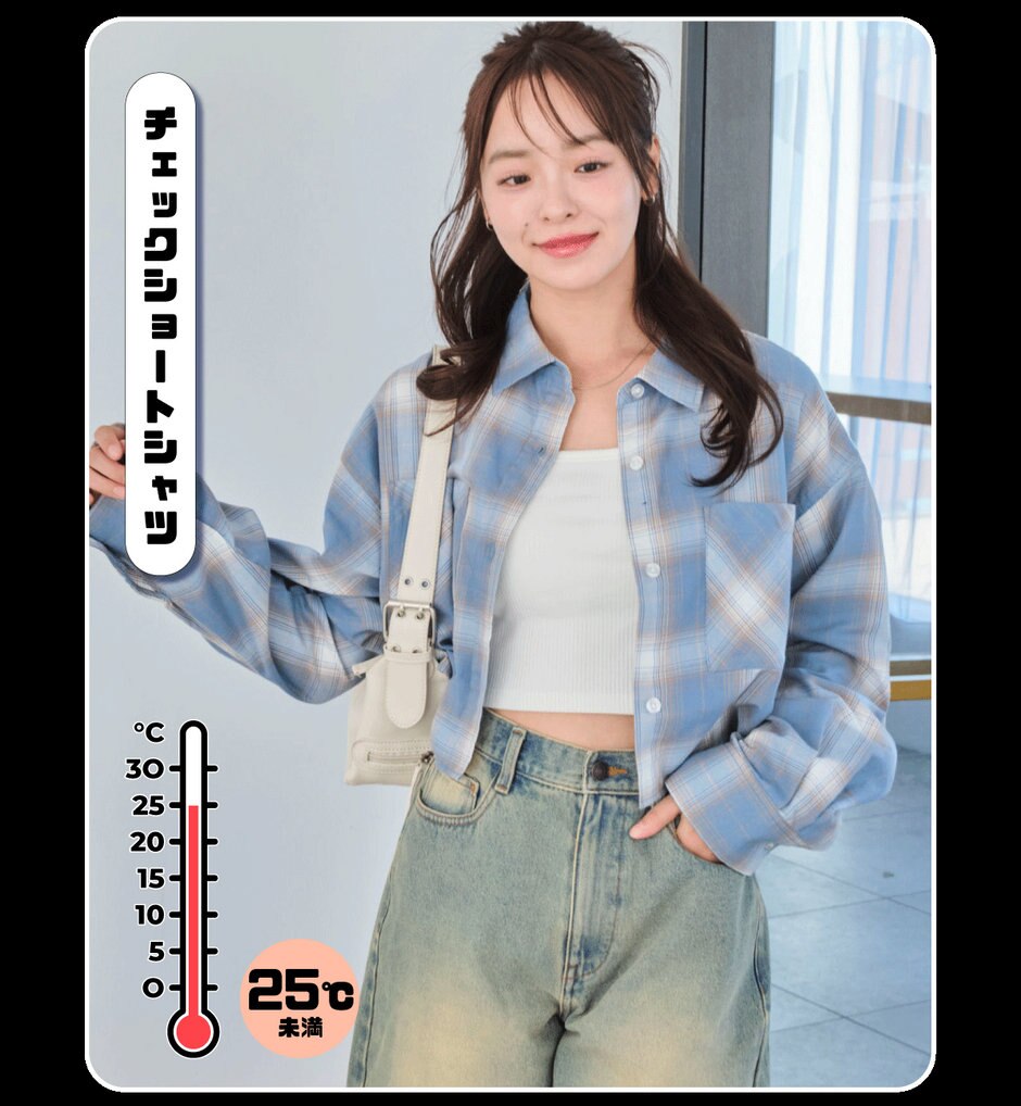 ボトムスに迷わないチェックシャツはショート丈なのでトレンド感も満載。