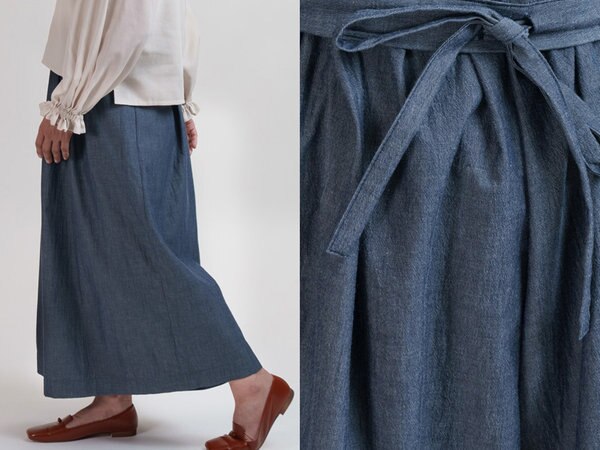 いずれも腰回りのシルエットにこだわってお作りしました。幅広のウエストでゴム仕様に加えて内紐も有りますので様々な体型の方に着ていただけます。