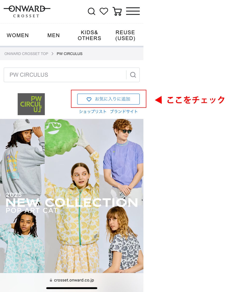 1.PW CIRCULUSトップの「♡お気に入りに追加」をタップ