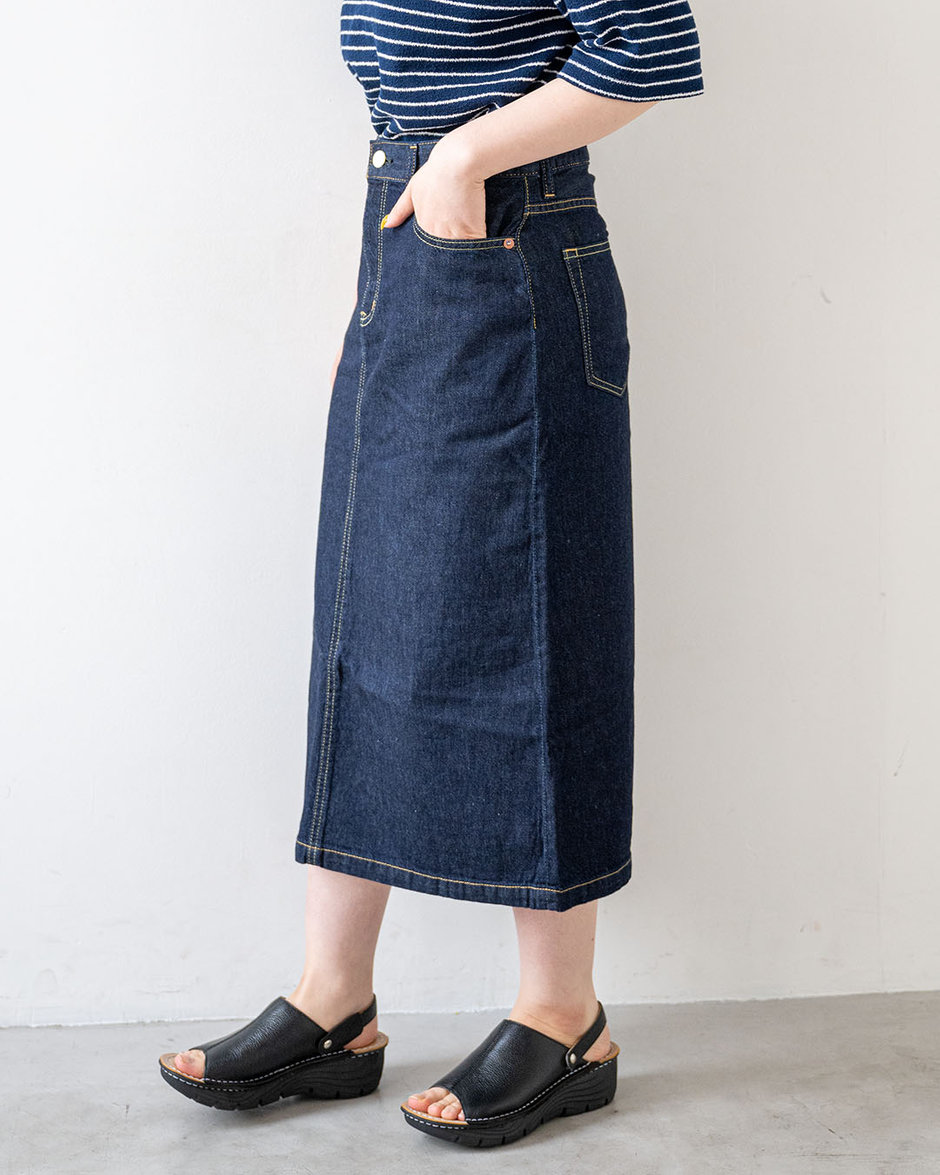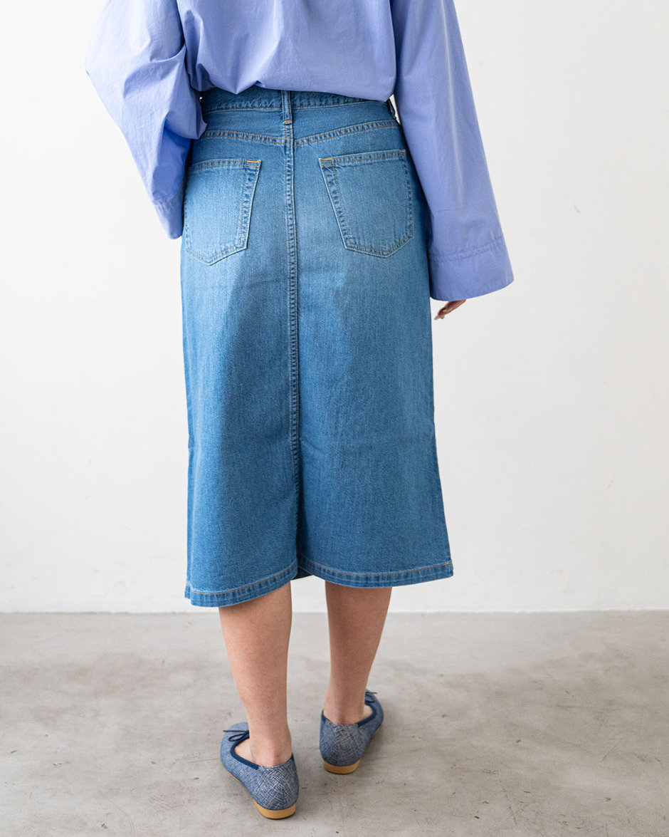 3/4と他にはない絶妙な丈感のデニムスカート。