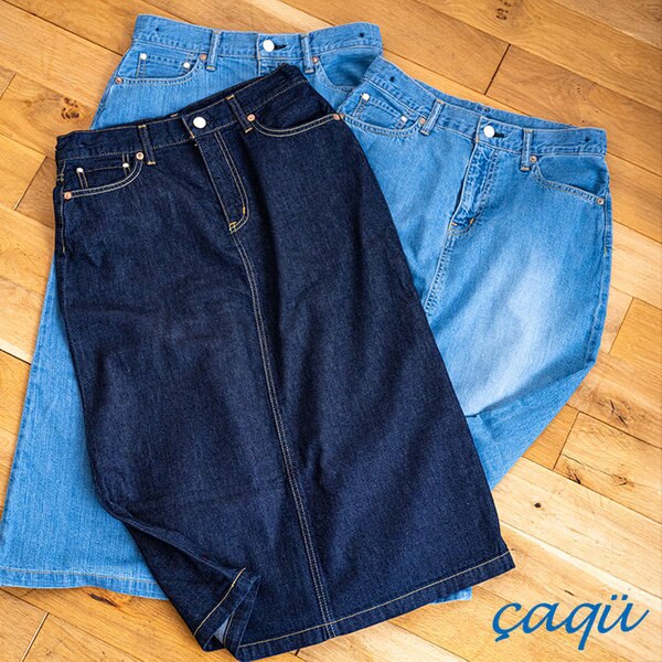 caquの中でも随一の人気を誇る、他にはない絶妙な丈感の3/4丈デニムスカート。