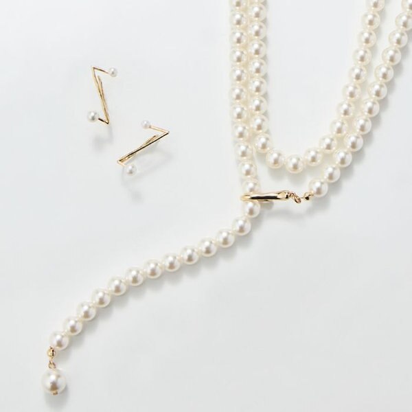 パールフックロングラリエットネックレス×2wayシンボリックラインピアス&イヤリングSET