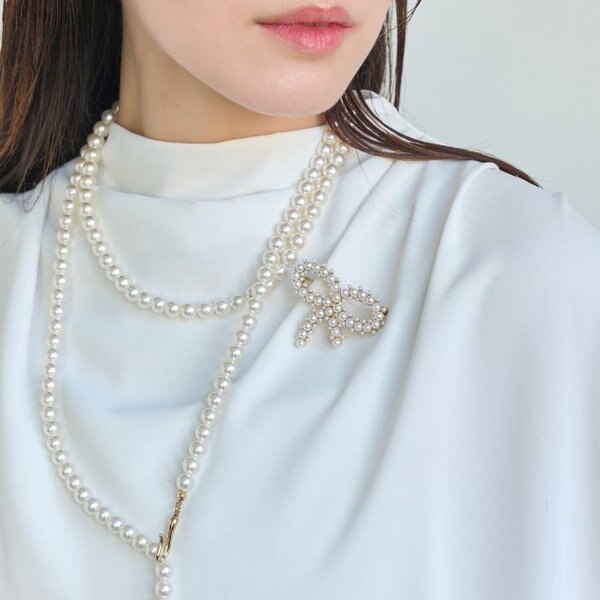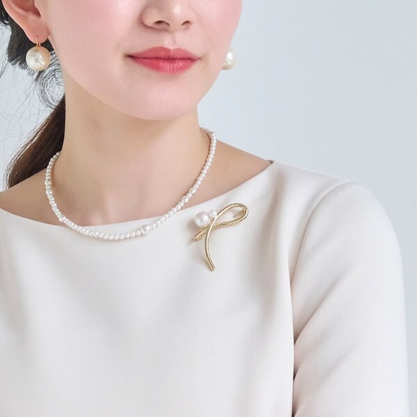 【たっぷりとパールを使った、大人可愛い雰囲気のリボンブローチ】