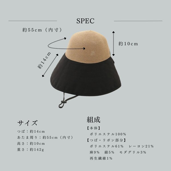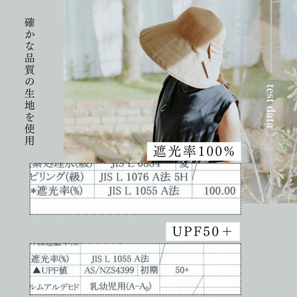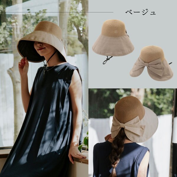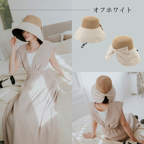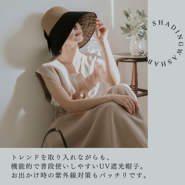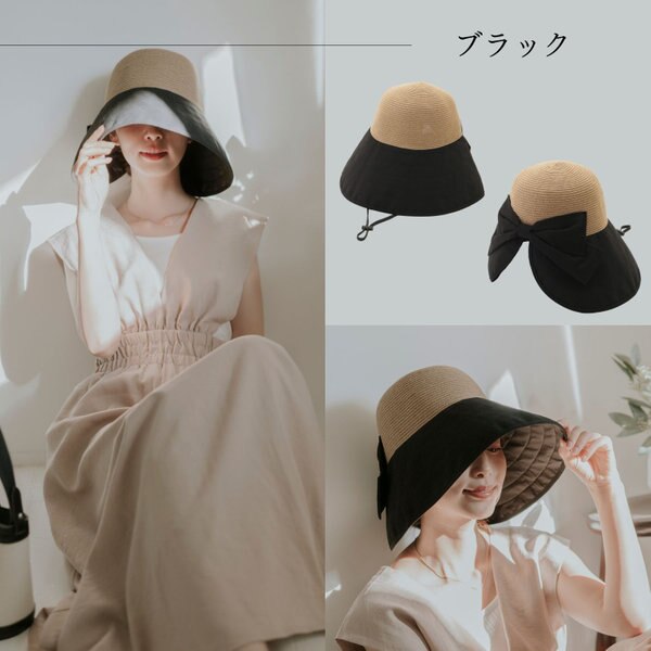 【遮光100%/UPF50%+/UVカット】洗えるバックリボン ブレードパラソルハット 手洗いOK/サイズ調整可能/吸水速乾/遮熱