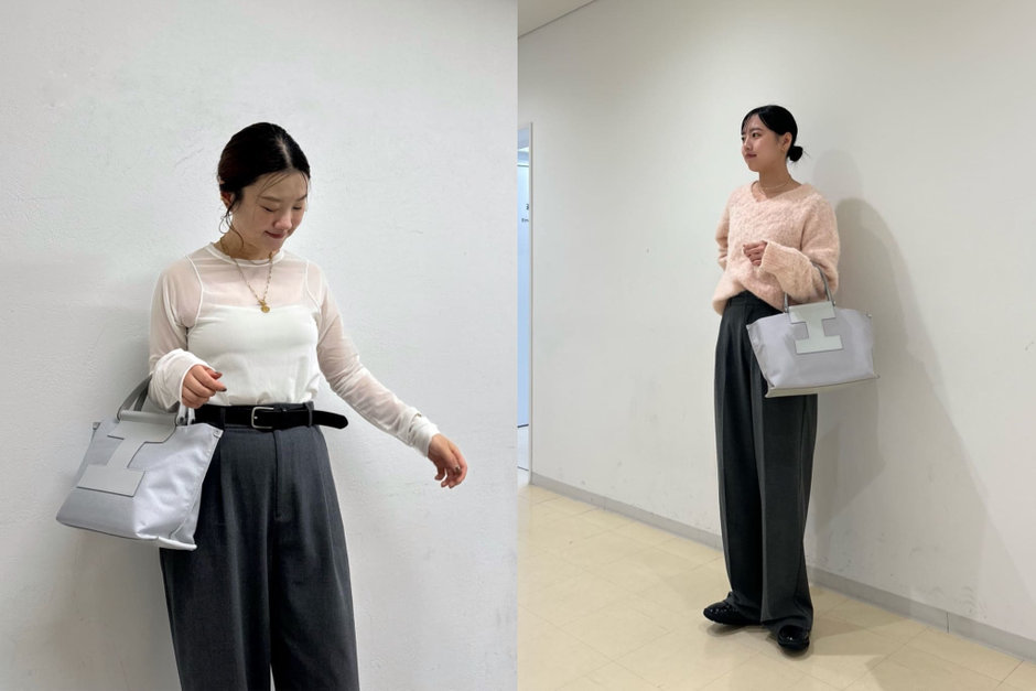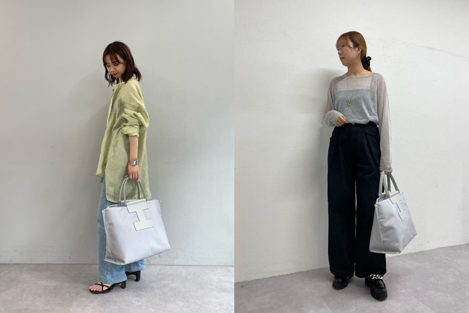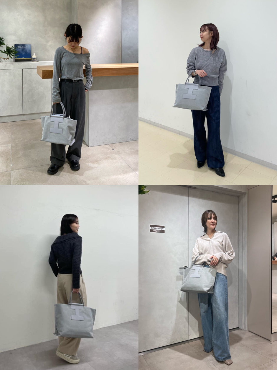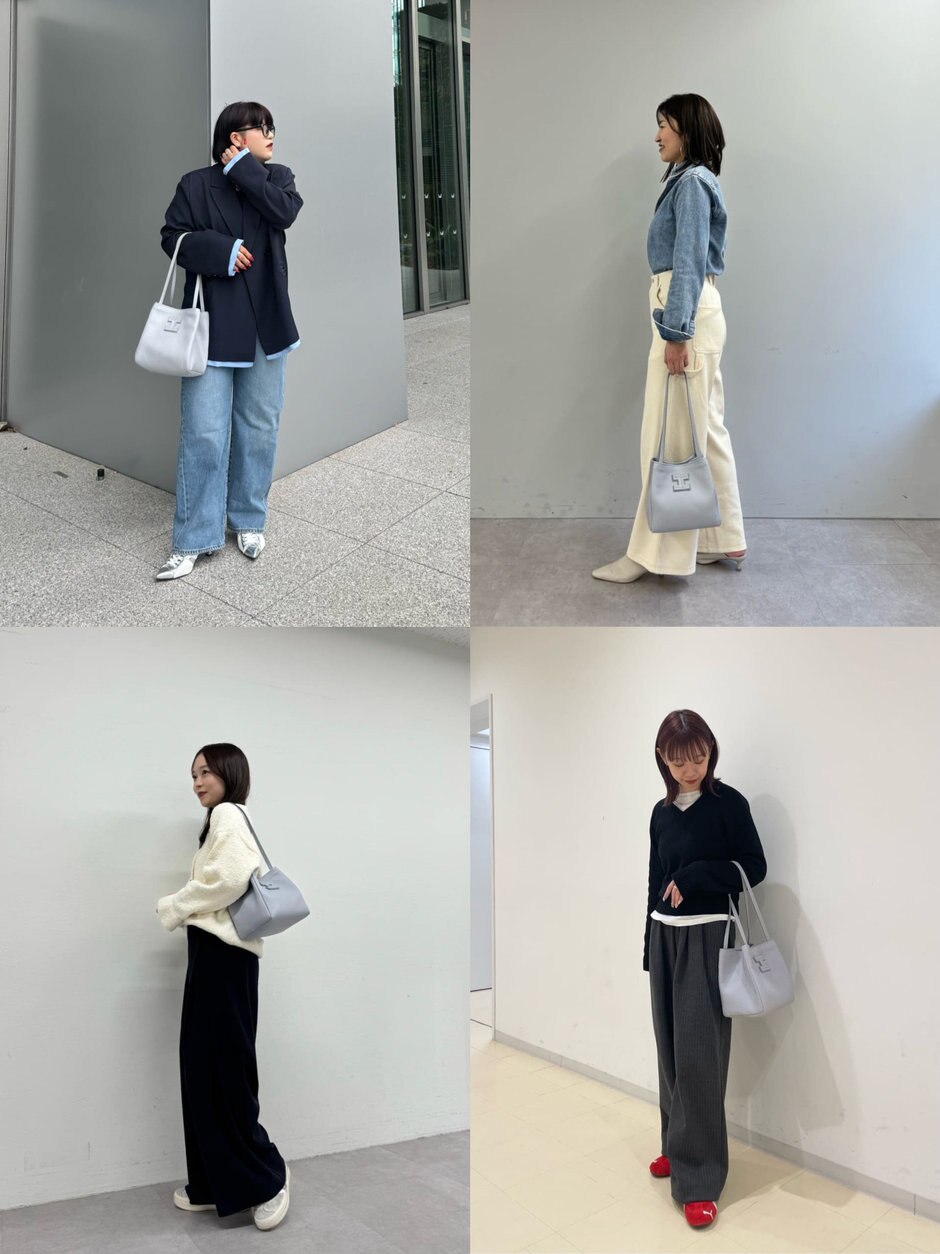 ほんのり青みがかったカラートーンのライトグレー。スタイリング馴染みは抜群ですが、程よくアクセントにもなるまとめカラー。申し分のない収納力ながら、ラフに肩掛けも叶うアイテムでお出掛けにもぴったり!