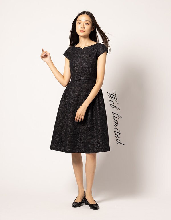 TOCCAらしい上品なツイードドレス。シックな印象のブラックですが、実物はラメ糸が目立って画像より華やかです。きれいなシルエットで着るだけで美しく見えるので、お食事会などにもぴったり。