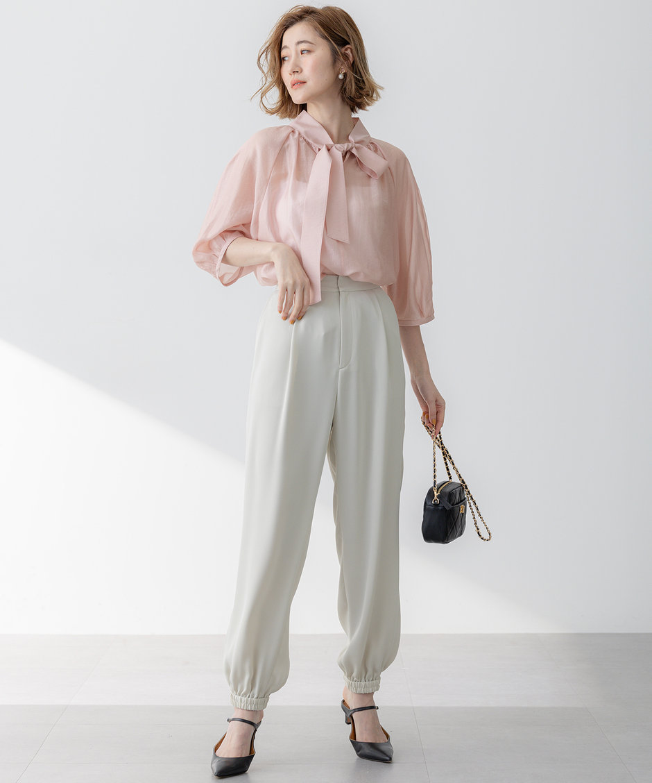 ▼ライトシアーミクスチャー ボウタイ ブラウス ¥16,940 税込