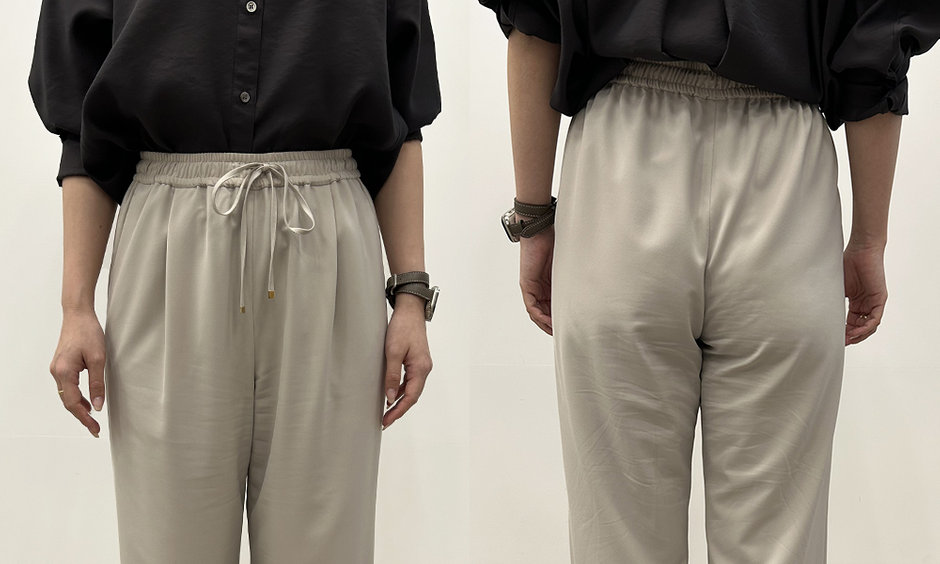 Item.04 美しいワイドシルエットでスタイリッシュに決まるドロストパンツ