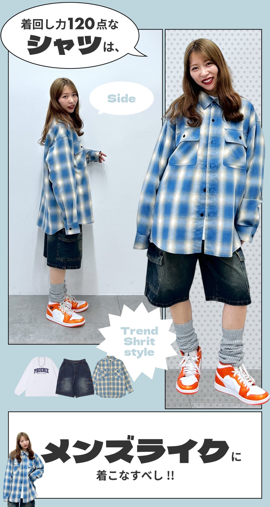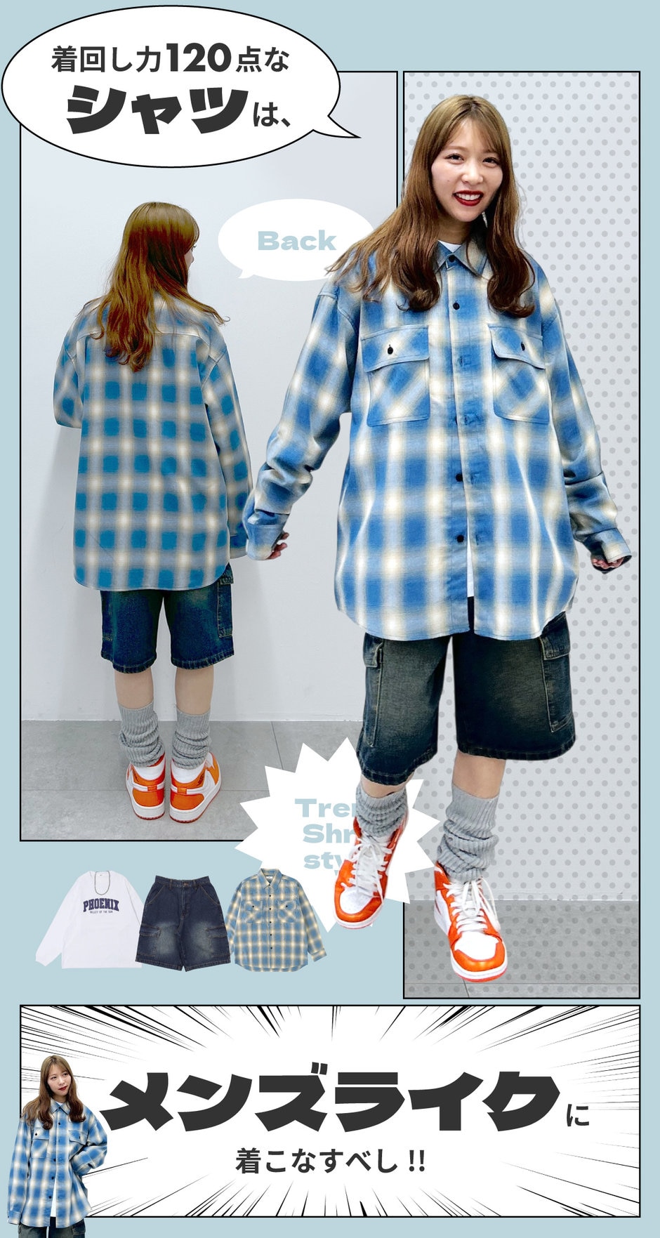 BIGシャツはハーフパンツと合わせてトレンド感もプラス!