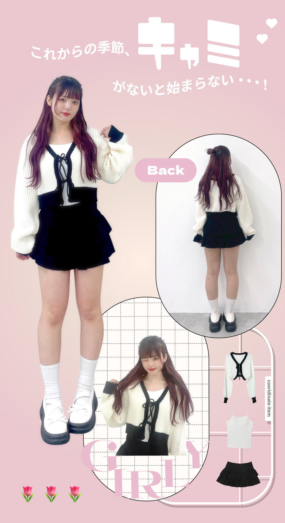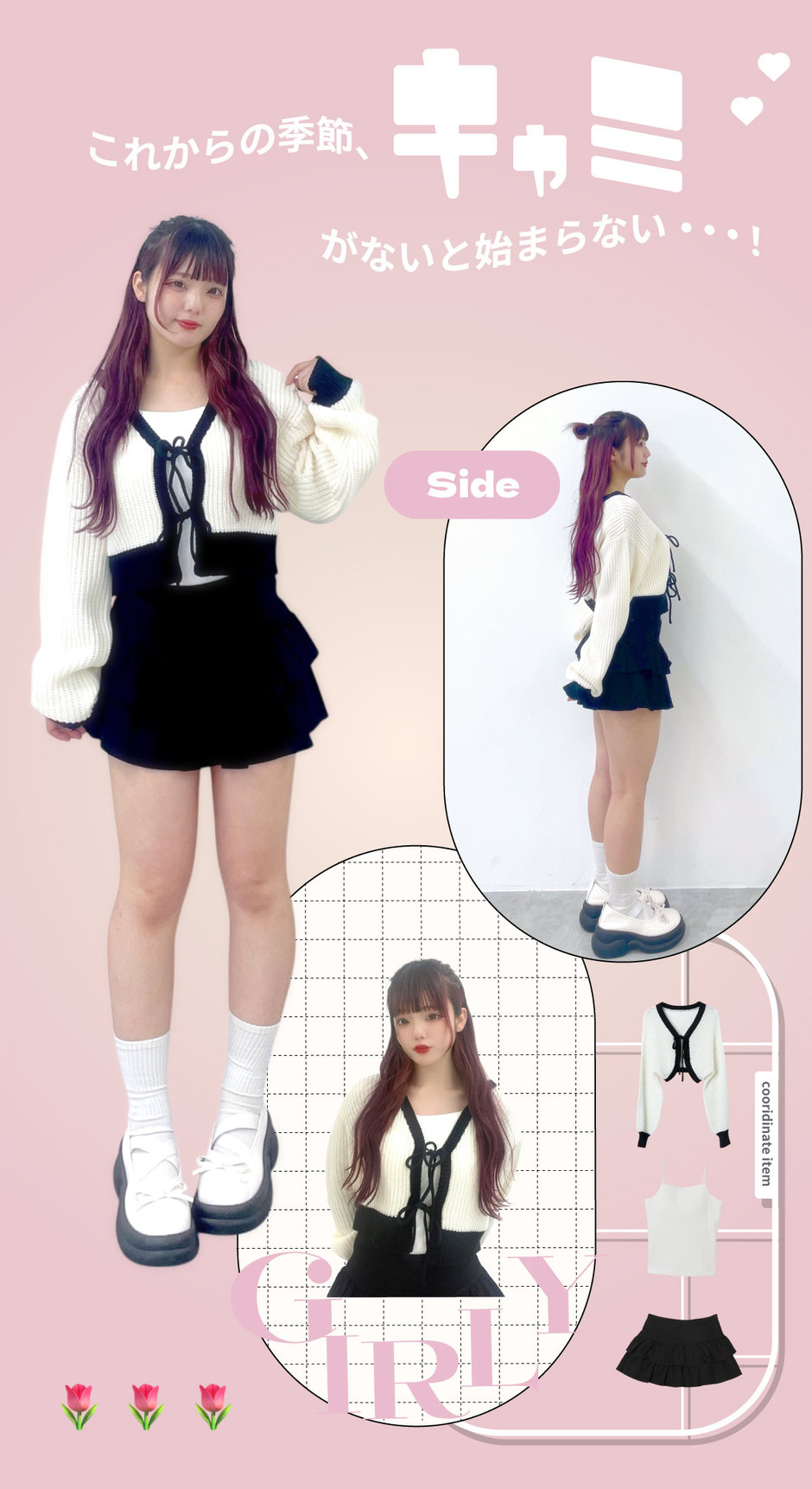 春らしくガーリーなカーデと合わせるのがオススメ!