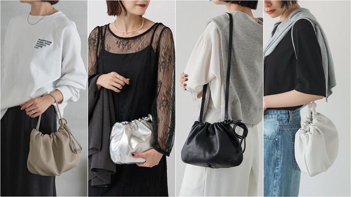 巾着のギャザー感がコーディネートに映えるデザインなので、持つだけでコーディネートがさらにおしゃれに仕上がります。