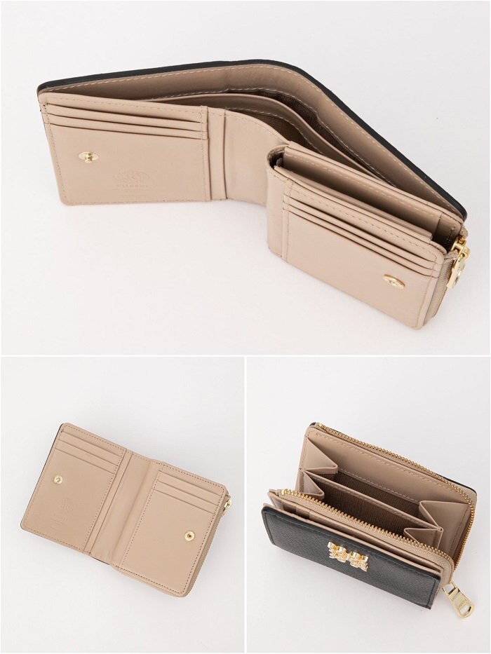 カード収納が9か所、お札やコインケースにそれぞれ間仕切りがついており、折財布とは思えないほどの機能性です。