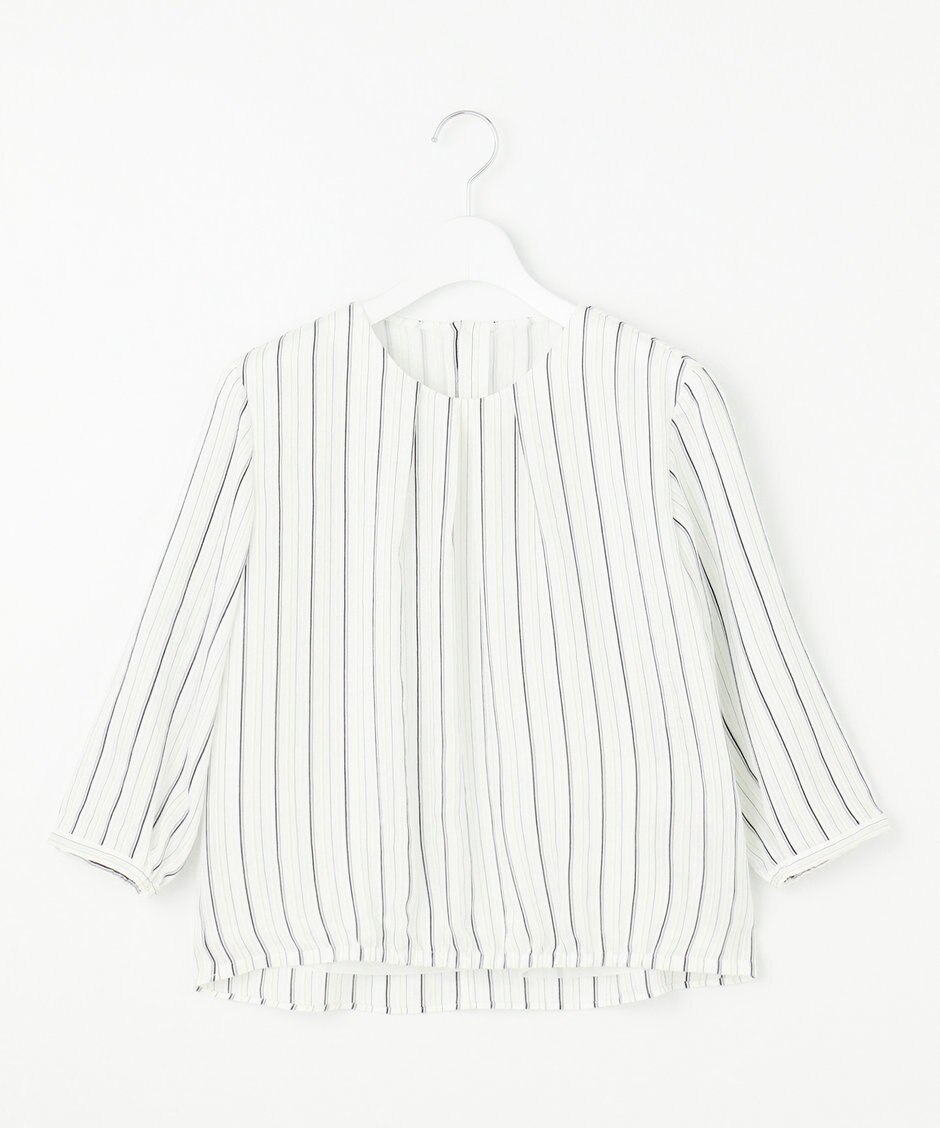 ランダムなストライプの涼し気なシアートップス。着るだけで春夏らしさをプラスできるデザインで、休日のお出かけからオフィスシーンまで幅広く活躍するアイテム。ジャージを2枚重ねにし、インナーが透けにくい仕様になっており、シンプルなパンツやスカートと相性がよい1着です。