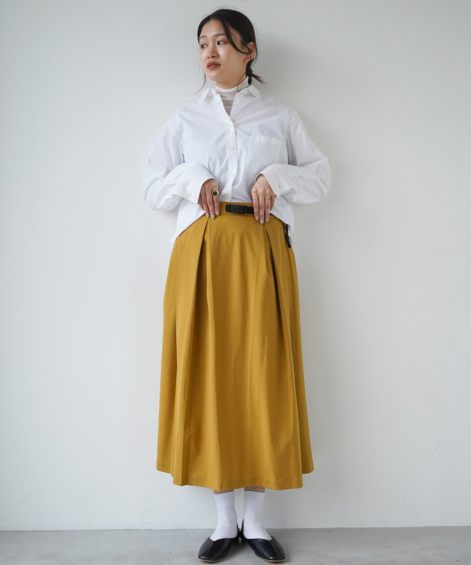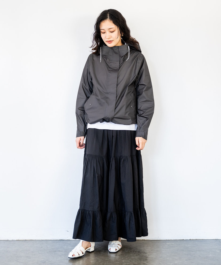 雨の日に気になる足元をカバーしてくれるロングスカート。