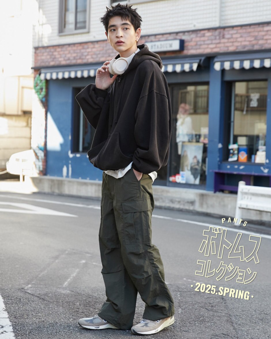 人気の高いカーゴパンツには、6つもついたポケットがポイント。