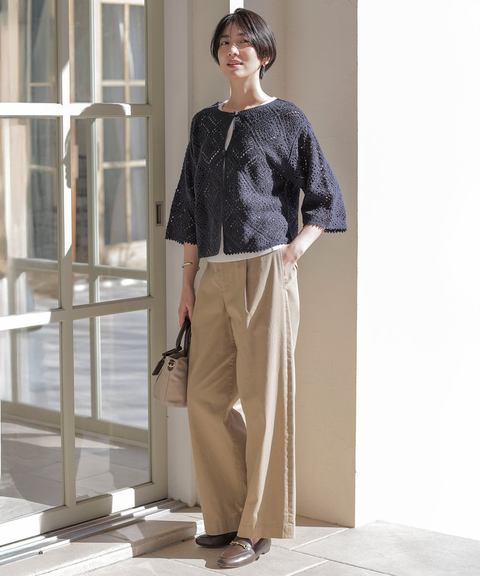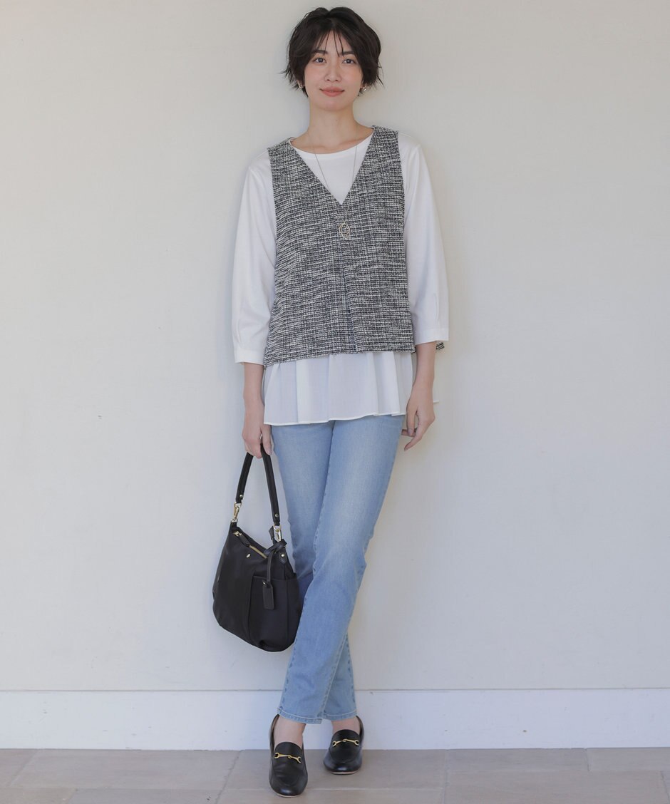 <上に重ねて、大人のこなれたスタイリングにーベスト・クロシェ・ビスチェ>