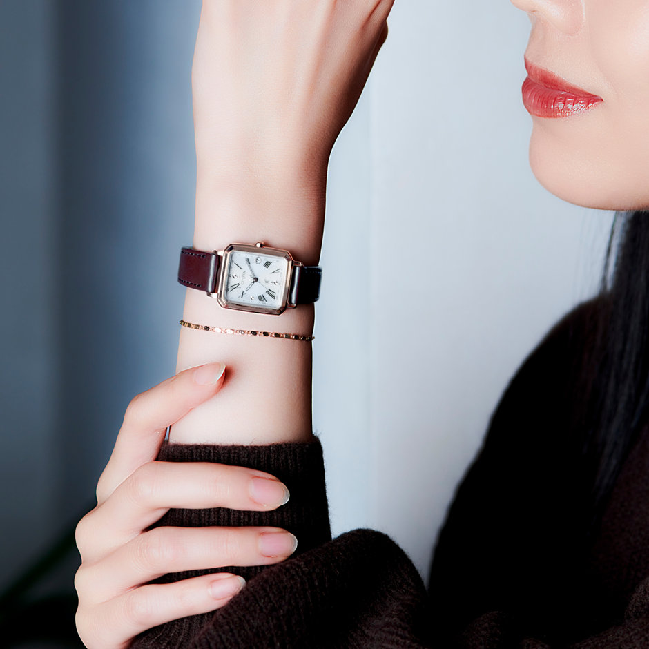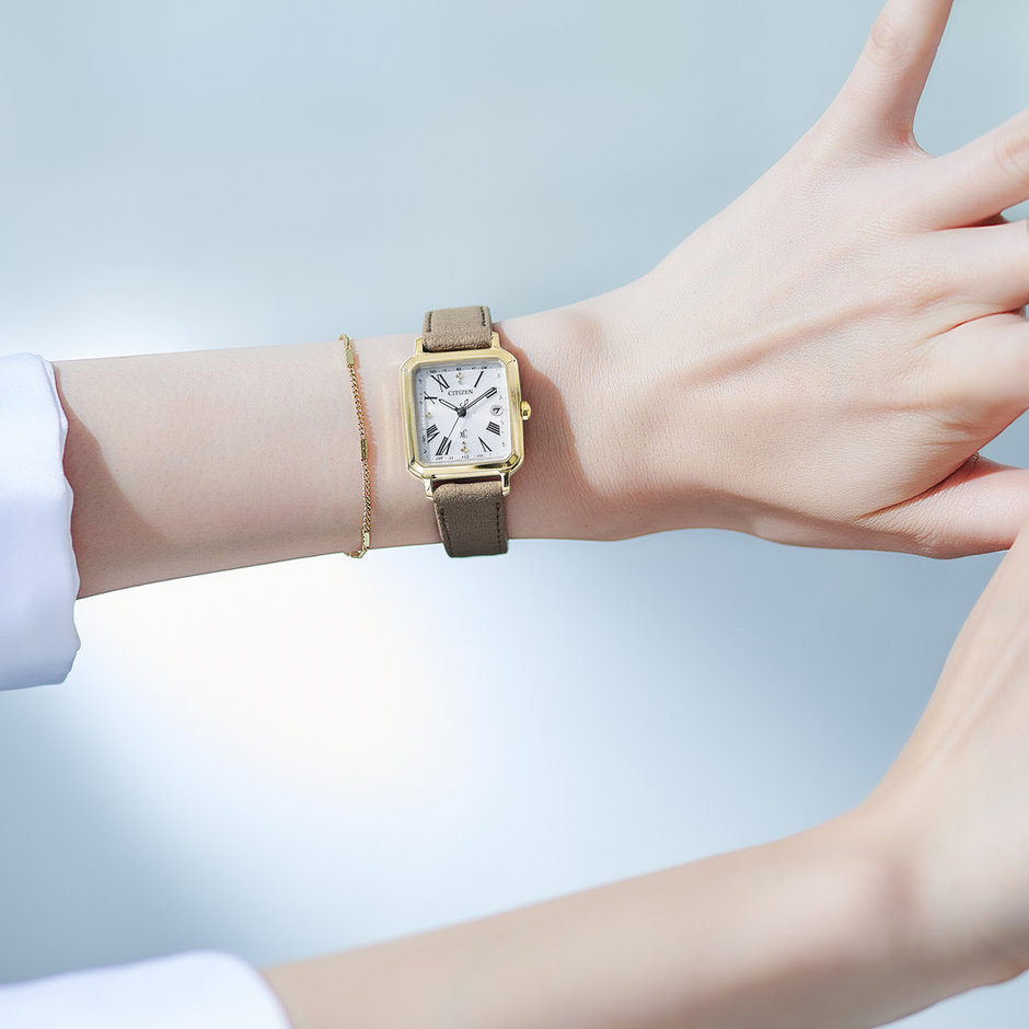 優しくフェミニンなクロスシーらしいケースライン。軽く、薄く、大きすぎないサイズ感で、スクエアを柔らかな印象へ導きます。