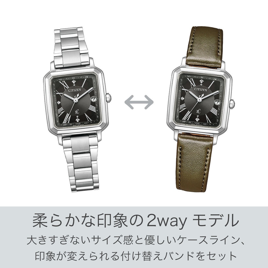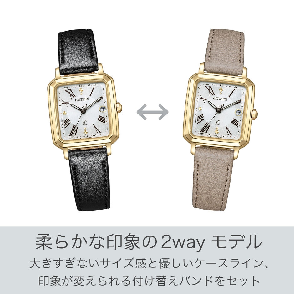 シーンに合わせて印象が変えられる付け替えバンドがセットされています。ご自身で付け外しができるので、ギフトにも適しています。待望のクロスシー スクエアモデルが入荷しました。手軽にバンドを替えられる2wayタイプです。