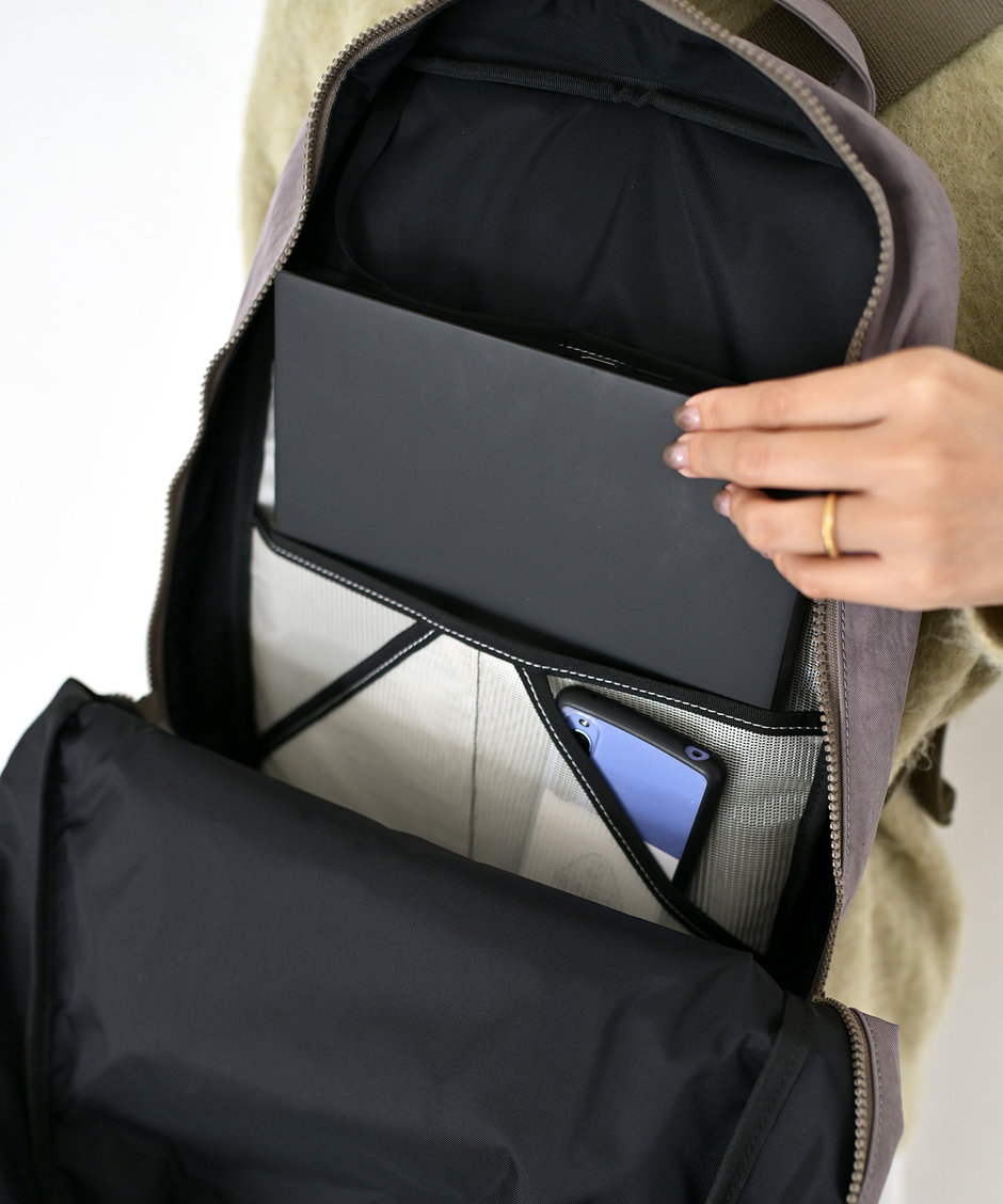 見た目がシンプルなため、旅行用にも通勤用にも使える万能リュック。