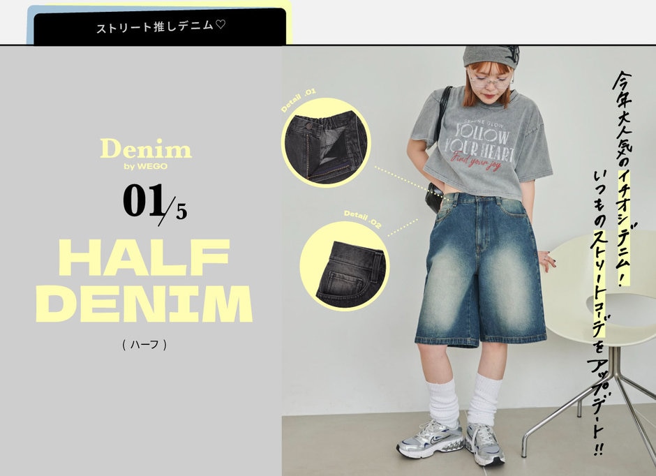 WEGOには定番デニムから今年おすすめハーフパンツやラインストーンデニムなどラインナップ豊富!