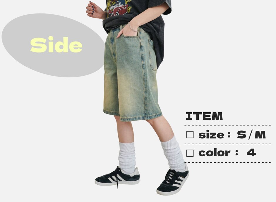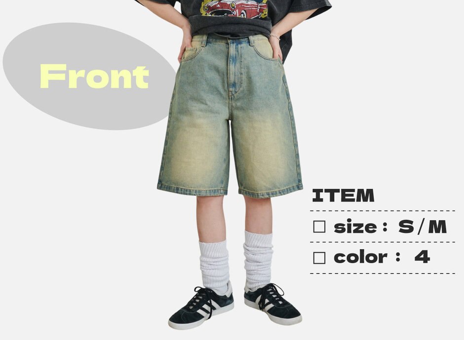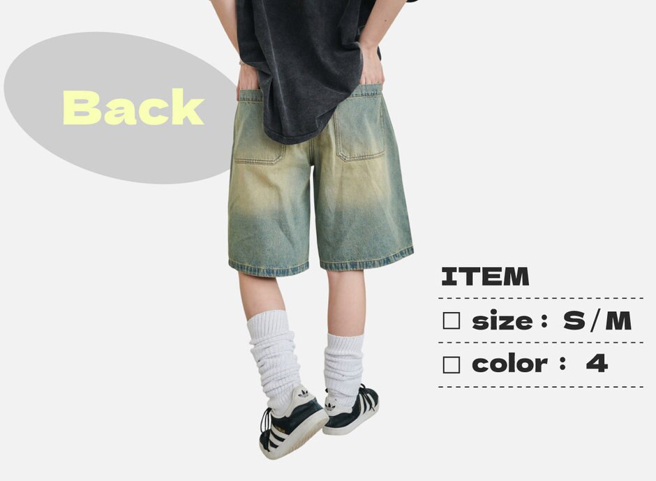 【SMサイズ展開】ヴィンテージウォッシュデニムハーフパンツ