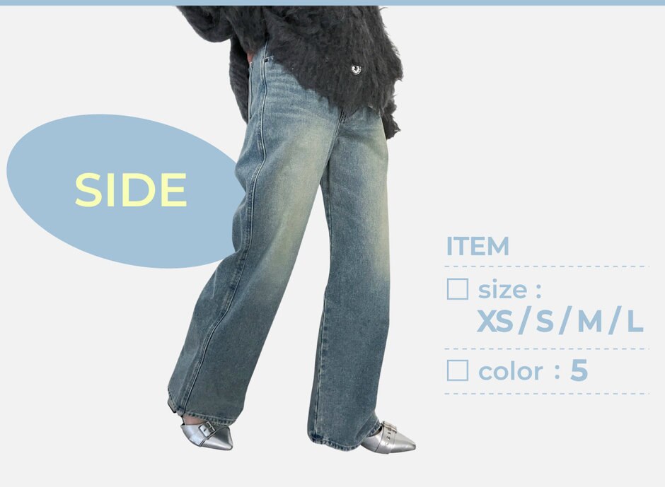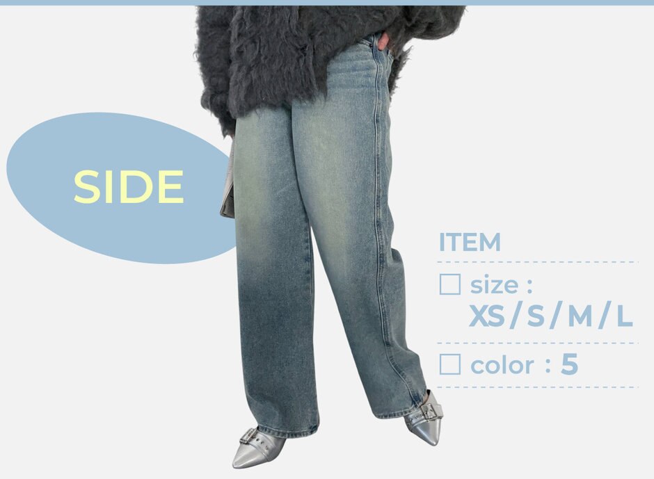 【SMサイズ展開】サイドカットデニムストレートパンツ