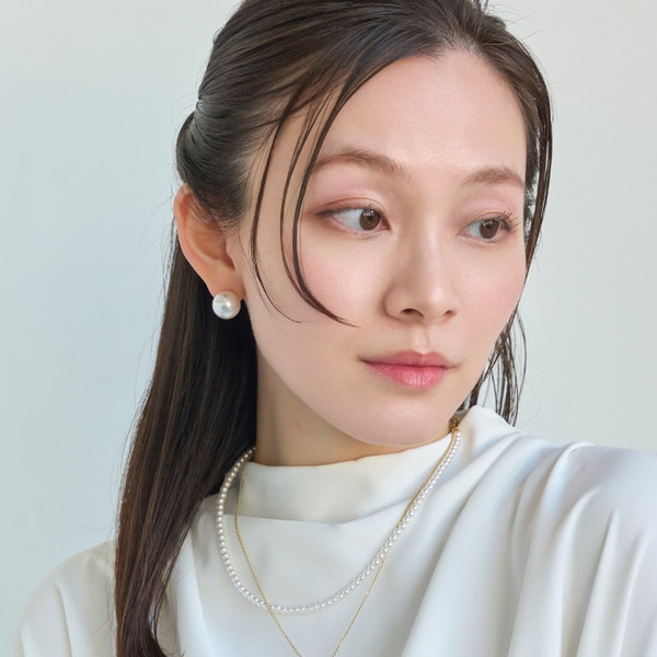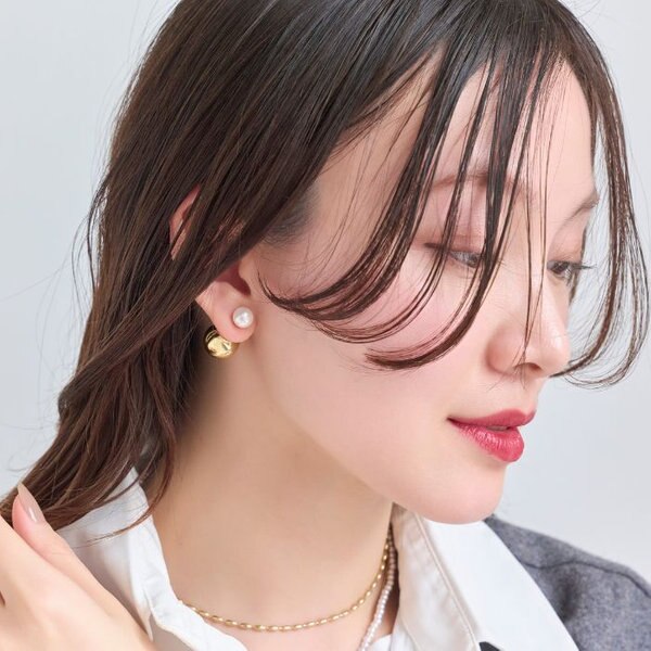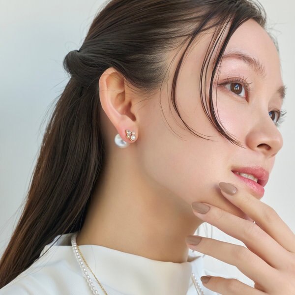 パールキャッチをフロントにして、大粒のパールピアスとしてもお使い頂けます。