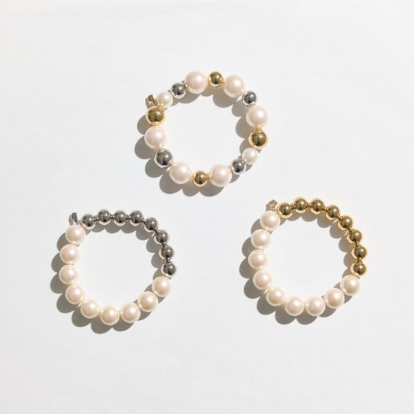 大きめのパールとメタルボールを使用したモードな雰囲気漂う華やかなブレスレット。